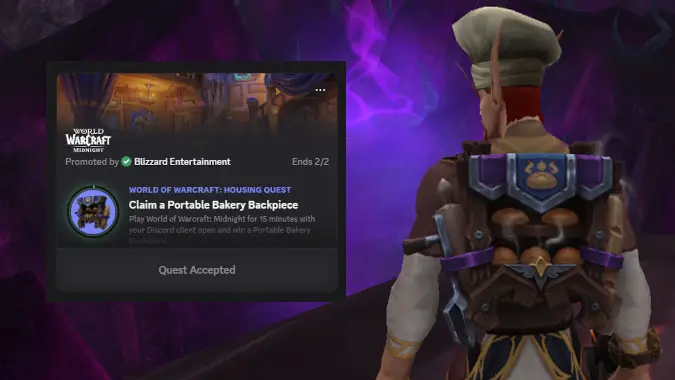 Earn a bakery-themed back transmog by playing World of Warcraft for 15 minutes with Discord quest
